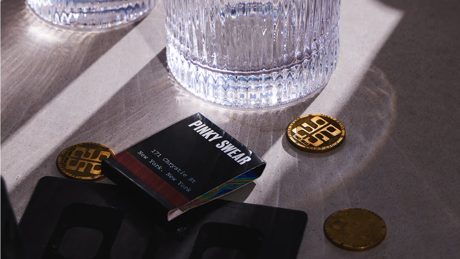 Monogram, menus, social posts and motion graphics by The Working Assembly for Manhattan bar Pinky Swear