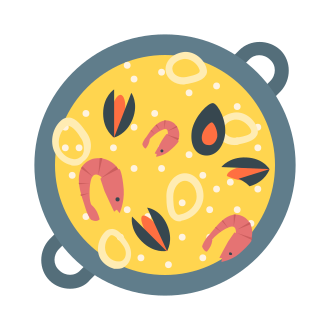 A flavorful rice dish cooked with seafood, meat, tomato, and citrus.