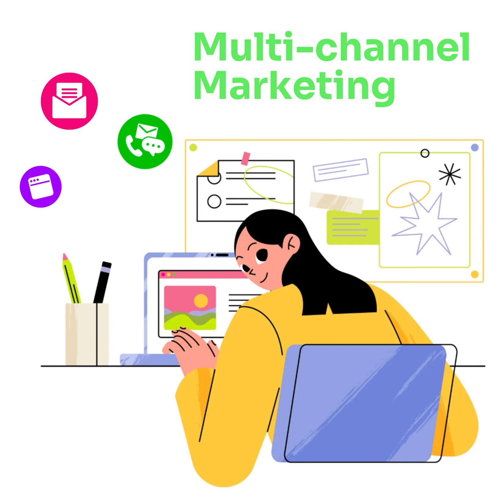 Multi-channel marketing is all about reaching your audience across various channels, from email to social media, websites, and more, all at the same time, so customers can engage with your brand however they like. It’s like casting a wider net with consistent messaging to boost visibility and touchpoints, without forcing everyone down a single path.