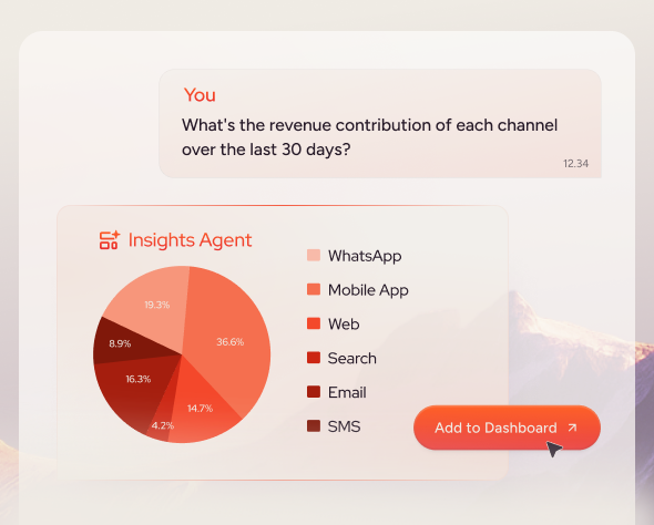 Check out our interactive platform tour to get a step-by-step walkthrough of how Insights Agent helps marketers, CRM and ecommerce experts generate insights through natural conversations.