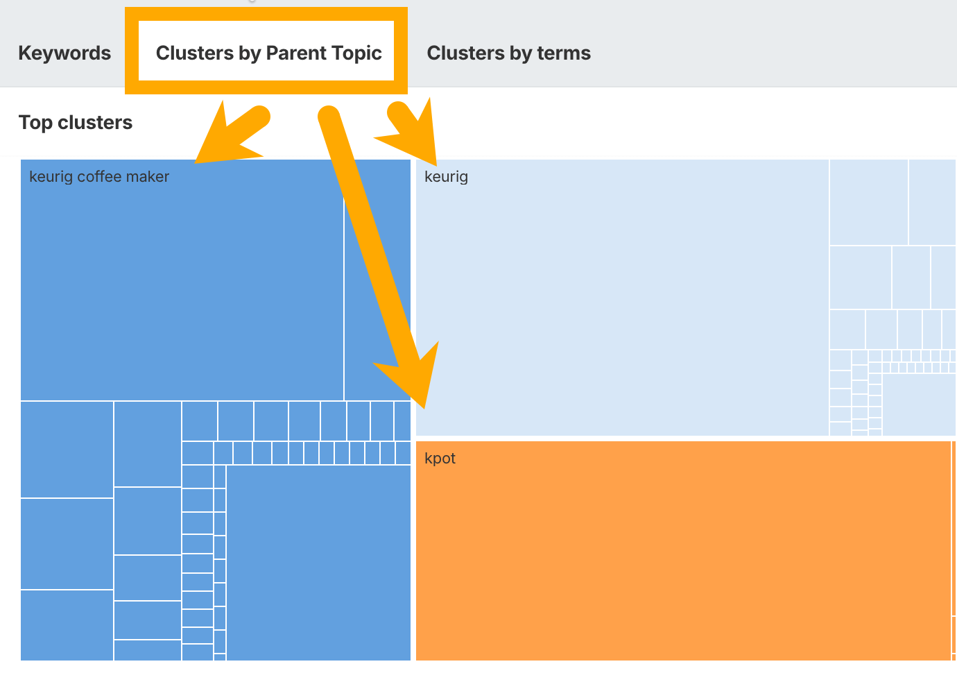In Keywords Explorer, switch to the Clusters by Parent Topic tab. This groups keywords by their parent topic—a proxy for search intent.