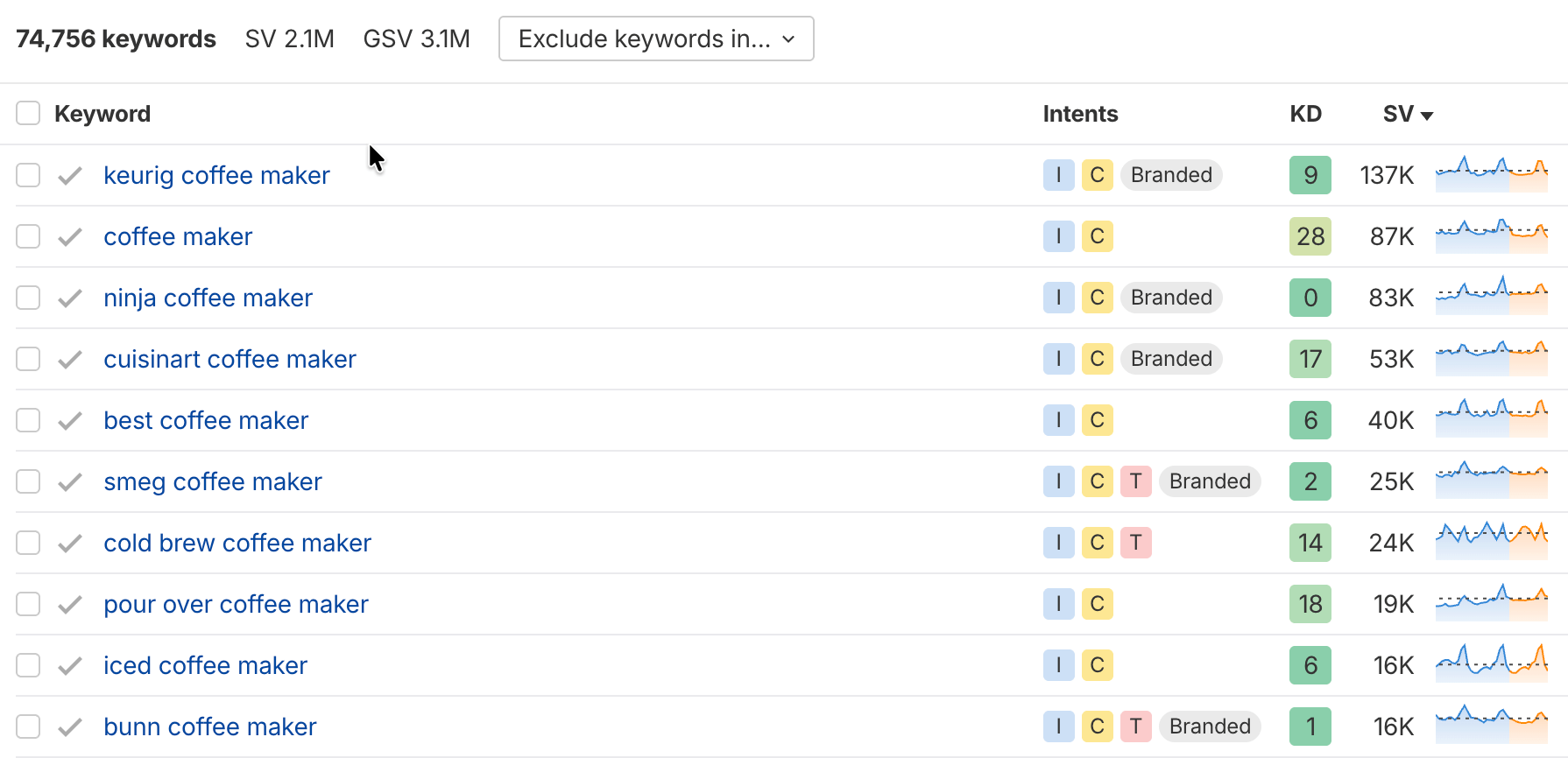 For example, if your seed keyword is “coffee maker”: