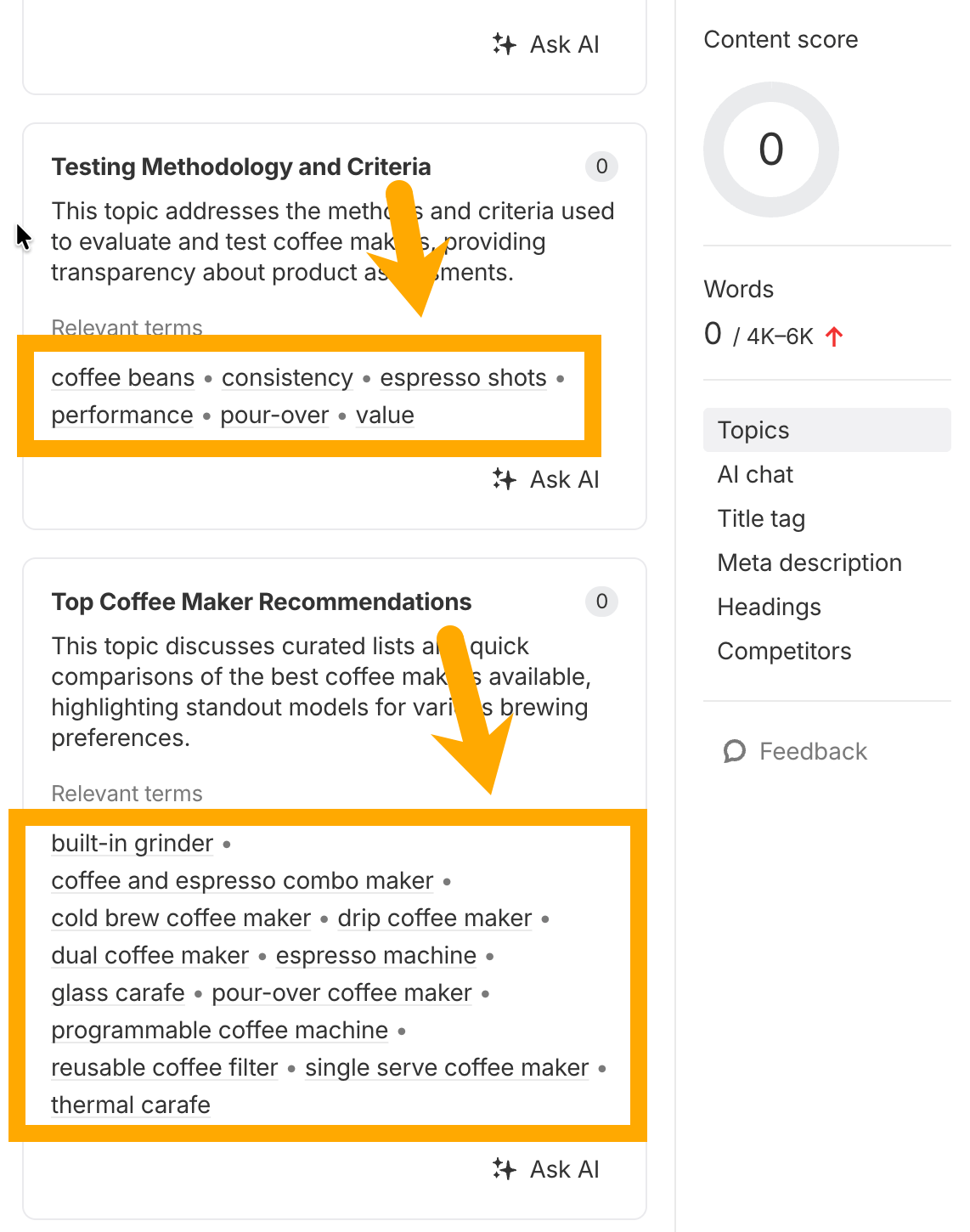 This is especially useful for comprehensive guides where you might miss important angles. The tool essentially reverse-engineers what’s working in search results and tells you what to include.