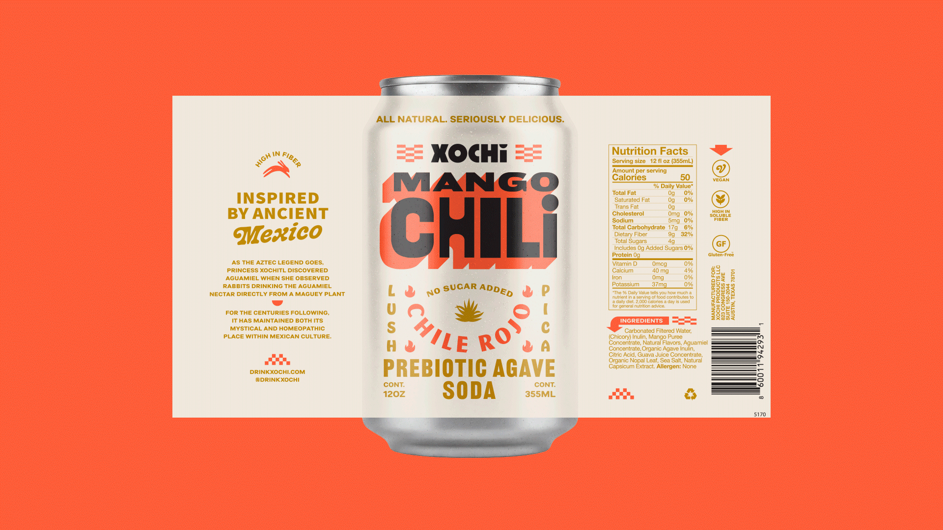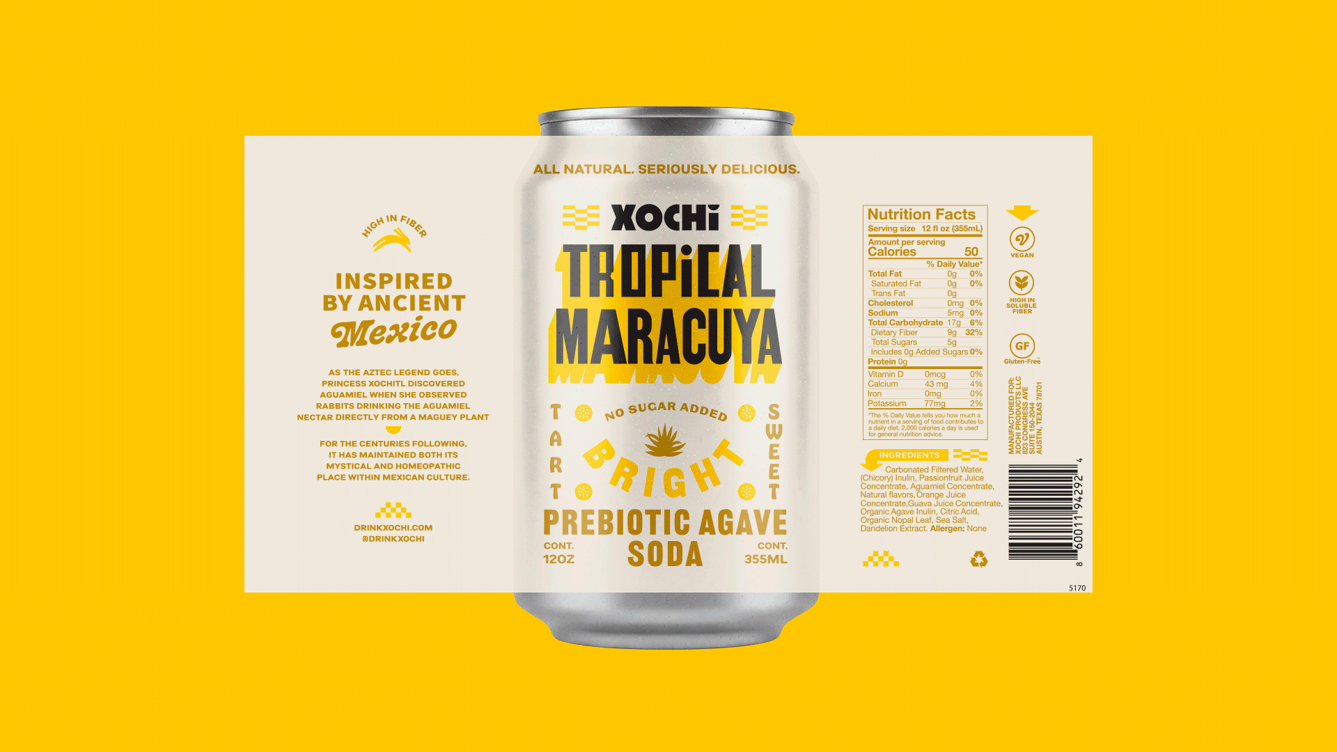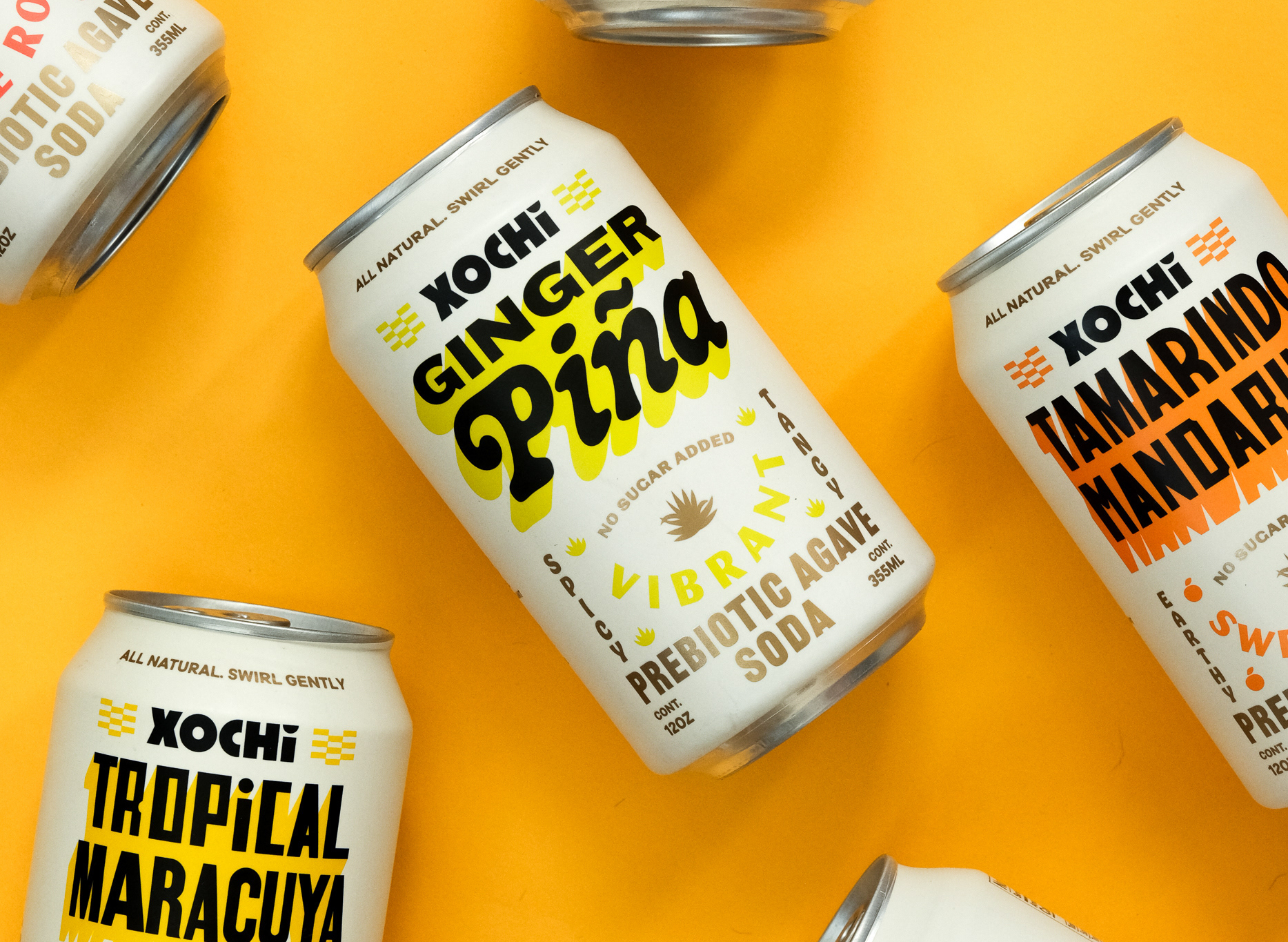 Now, meet Xochi, a prebiotic agave soda made with 100% natural ingredients according to Kinoto Studio, which is responsible for its graphic design and packaging.